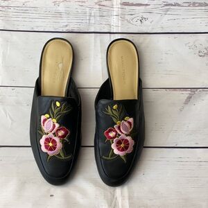 Marc Fisher Women Black Floral Embroidered Mules - 8.5
