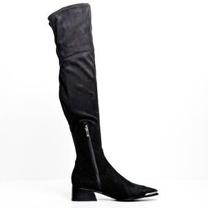 Marc Fisher Women Darwin Black Fabric Zip OTK Metal Pointy Toe Boots sz 8