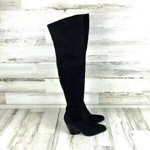 Marc Fisher Women’s 5 Black Faux Suede Over-the-Knee Boots Block Heel NEW
