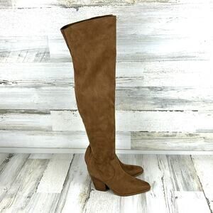 Marc Fisher Women’s 5 Tan Garalyn Suede Over-the-Knee Boots Block Heel NEW