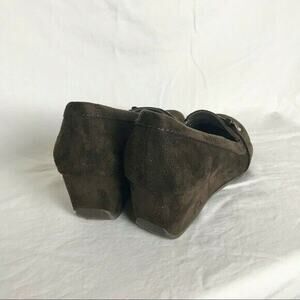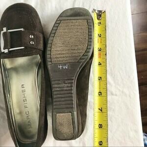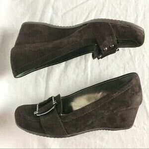 Marc Fisher Women's 7M Brown Faux Suede Leather Low Wedge Heel Shoes With Buckle