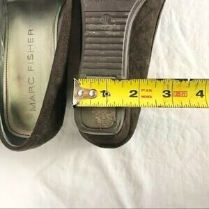 These are a very nice pair of women's Marc Fisher brown faux suede leather wedges! They are in great used condition, with mild wear seen. There is a small blemish on the inside of the right shoe, as pictured. See pictures for details and measurements. Size is women's 7M.