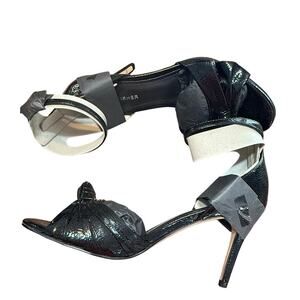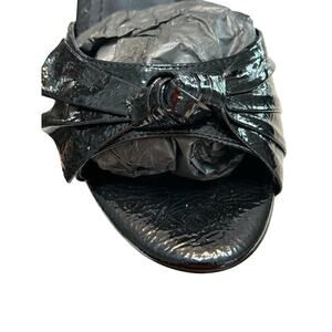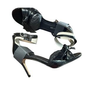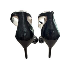 Marc Fisher Women’s Brodie Bow Ankle Strap Pumps Black Glossy Open Toe Heels Size 8M Stiletto Heel