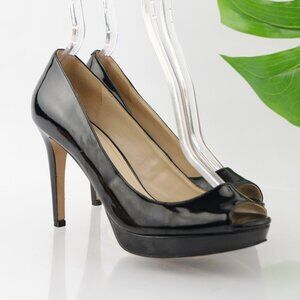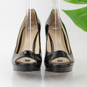 Marc Fisher Womens Byanka Pump Size 7 Black Patent Platfrom Heels Peep Toe Shoes