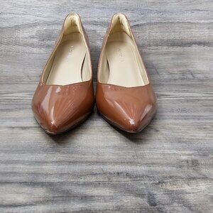 Marc Fisher Women's Caitlin Block Heels Brown Patent Pointed Toe Pump Size 6 1/2M