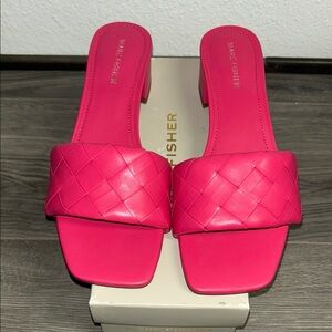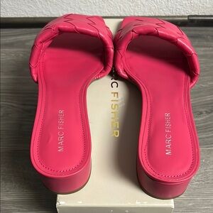 Keep your go-to style simple yet stylish with the casper slide sandal by Marc Fisher. This sandal has a single woven-banded upper, easy slip on feature and a low block heel for eye-catching appeal.