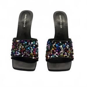 Add some sparkle to your wardrobe with the Marc Fisher Danria Sequin Dress Slip-on Sandals. These stunning sandals feature a sequin embellished strap that adds a touch of glamour and sophistication to your look. The stiletto heel provides a flattering lift, while the slip-on design allows for easy on and off. Whether you pair them with a little black dress or your favorite jeans, these sandals are a must-have shoe collection. Available in a range of sizes.