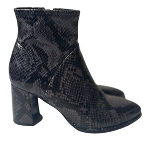 Marc Fisher Women’s Dyvine Grey Snakeskin Pointed Toe Block Heel Ankle Boots