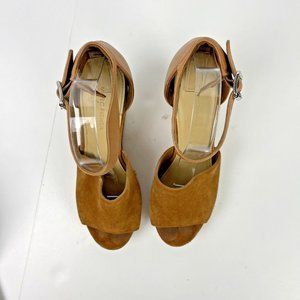 Marc Fisher Women's HILLORY Suede Leather Cork Wedge Brown Sandals Size 8.5