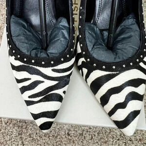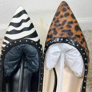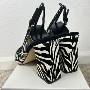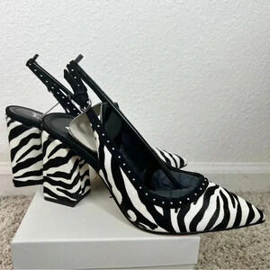 Marc Fisher "Joily" black and white zebra print, slingback pumps, NWT, pointed toe, micro studded trim, and block heel. ****Also Available in my closet in Black and brown leopard print in size 7.5**** Will come in original box.
