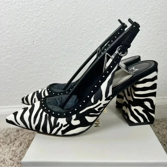 Marc Fisher "Joily" black and white zebra print, slingback pumps, NWT, pointed toe, micro studded trim, and block heel. ****Also Available in my closet in Black and brown leopard print in size 7.5**** Will come in original box.