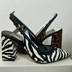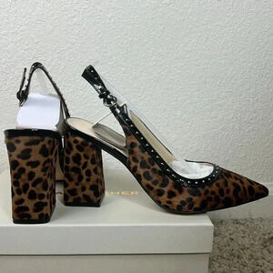 Marc Fisher "Joily" black and brown leopard print, slingback pumps, NWT, pointed toe, micro studded trim, and block heel. ****Also Available in my closet in Black and White zebra print in size 7.5**** Will come in original box.