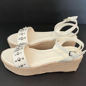 Marc Fisher Women's Joyce Ankle Strap Studded Espadrille Platform Sandals