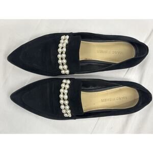 Marc Fisher Women's Kneel Pearl Embellished Flat Loafer Black Suede Size 8.5