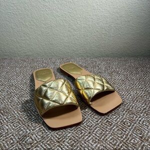 Marc Fisher Womens Leather Gold Metallic Puff Square Toe Sandals Sz 6.5M Boho