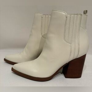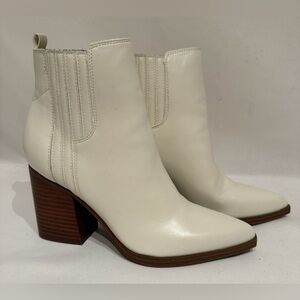 Marc Fisher Womens Matter2 Ivory Pointed Toe Block Heel Ankle Boots Size 7.5M