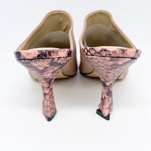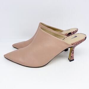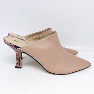 These Marc Fisher mules feature a chic pointed toe and a unique pink snakeskin accent on the heels. The leather upper adds a touch of sophistication.