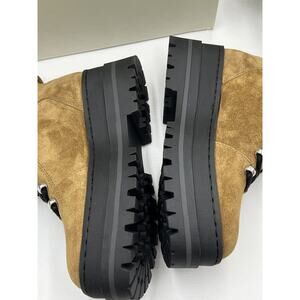 Marc Fisher Womens Pierson Lug Sole Combat Boot Leather/ Shearling Fur 6.5M New