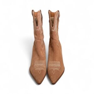 Marc Fisher Women's Rogers Leather Embroidered Cowboy Western Boot Brown Size 7M