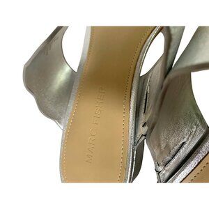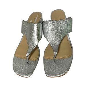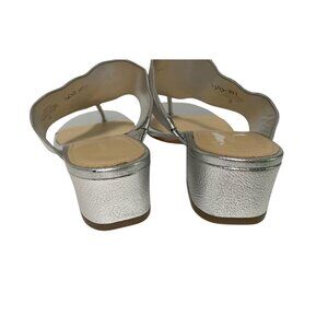 Marc Fisher Womens Size 8 M Leather Silver Slide Flip Flop Slip On Sandal Shoes Thong 1.5 in heel