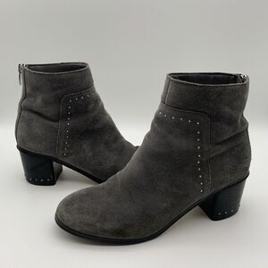 Marc Fisher Womens Suede Ankle Bootie Gray 7.5M Umala-T Round Toe Silver Studs