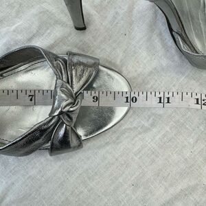 Marc Fisher Women's Surelle Leather Bow Silver Stiletto Heels Sandals 7