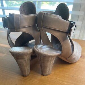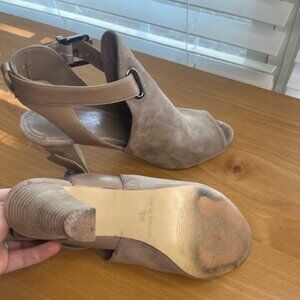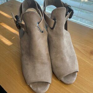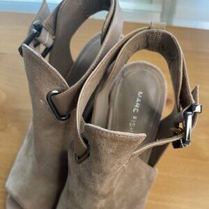 Marc Fisher Women's Tan Suede Buckle Heeled Open Toe Ankle Shootie