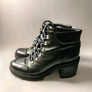 Marc Fisher Womens Waldo Lug Sole Combat Boots Size 10 Black Chunky Platform EUC