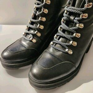 Marc Fisher Women's Waldo Lug Sole Combat Boots Shoes Size 10M. Black leather upper. chunky, lugged platform sole. Classic combat boot aesthetic. Excellent condition with only the slightest sign of wear. Retail $249.