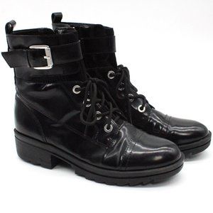 Marc Fisher Womens White 1" Platform Bristyn Block Heel Leather Combat Boots 9M
