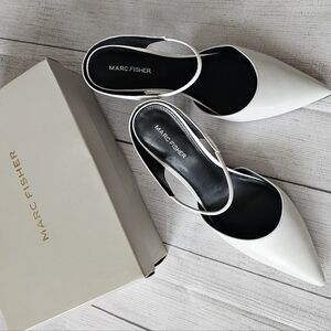 Step out in style with these elegant white slingback heels from Marc Fisher. Perfect for any occasion, these shoes offer both comfort and sophistication.