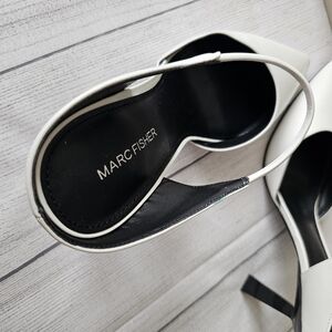 Step out in style with these elegant white slingback heels from Marc Fisher. Perfect for any occasion, these shoes offer both comfort and sophistication.