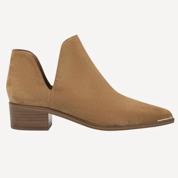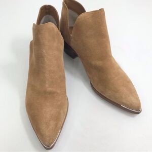 Marc Fisher YILDA Camel Brown Suede Leather Side Cutout Slip On Bootie