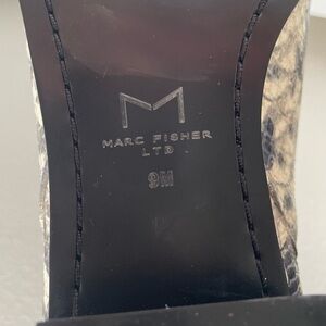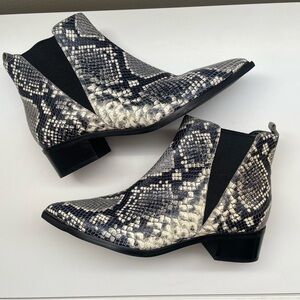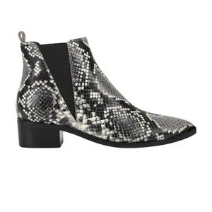 Marc Fisher Yale Pointed Chelsea Bootie reptile snake leather boot black white 9
