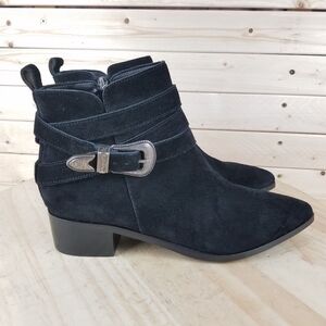 Marc Fisher Yandi 8 US Black Suede/Leather Ankle Buckle Boots Western Bootie NEW
