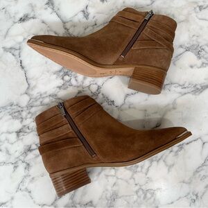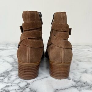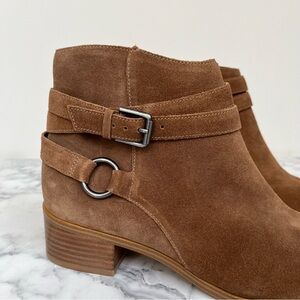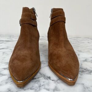 Marc Fisher Yatina brown suede ankle boots pointed toe buckles size 8 in excellent condition, no flaws. These appear to have never been worn