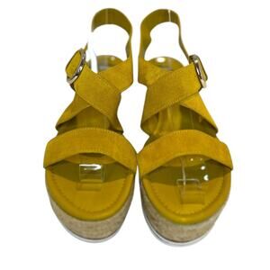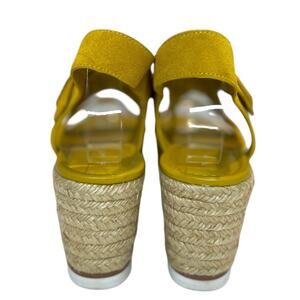 Marc Fisher Zain Yellow Buckle Strap Wedge Heel Suede Espadrille Sandals 8 1/2 M