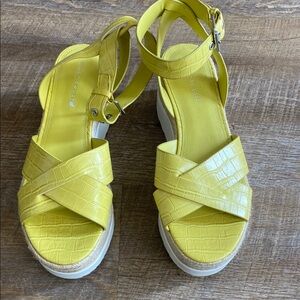 Step out in style with these vibrant yellow croc-embossed sandals. Perfect for adding a pop of color to any outfit. Excellent preowned condition. No rips, stains, or odors. See all photos. Minor wear! Look brand new! I love offer!