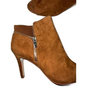 Marc Fisher Zipper Brown Suede Peeptoe Booties Size 9.5 NWOT