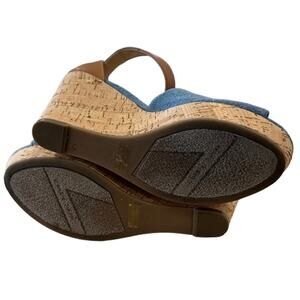 Marc fisher cork wedges medium blue denim and leather uppers, size 8