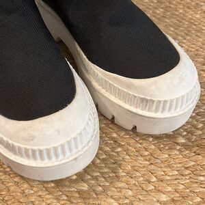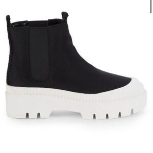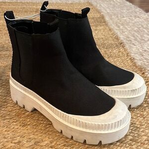 Marc Fisher lug sole libbi black and white ankle block heel boots