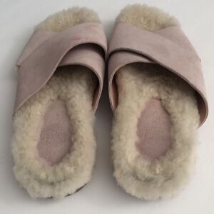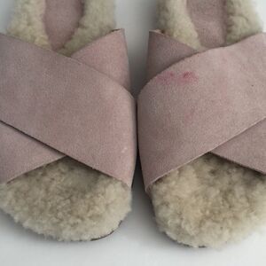 Marc Fisher slip on shearling wool and pink suede open toe ship on shoes MLCANNA