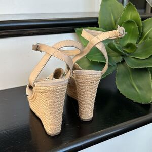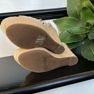 These Marc Fisher wedge shoes are comfortable platform style with an approximate 4.5” heel. These shoes are a great neutral no matter the season and have minimal signs of use. Women’s size 6