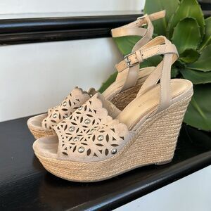 Marc Fisher tan Suede Studded Chunky Platform Wedge 6