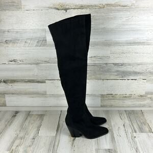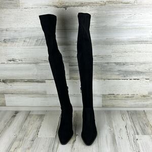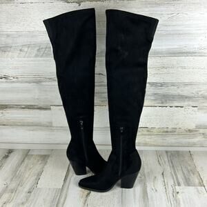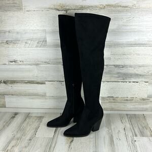Marc Fisher womens 5 black faux suede over the knee boots block heel new