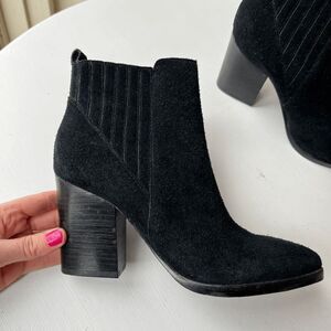 Marc Fisher Alva Bootie Black Suede Point Toe SZ 7 Block Heel