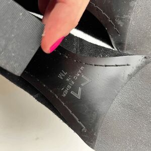 Elevate your wardrobe with these Marc Fisher LTD “Alva” booties in classic black suede. Featuring a sleek pointed toe and chunky stacked block heel, these boots strike the perfect balance between edgy and versatile. The side panels feature stitched elastic gussets for easy slip-on wear, and the clean silhouette makes these a go-to for both work and weekend looks. Leather upper, man-made balance. These boots are timeless with just the right amount of structure to feel elevated but still effortless.