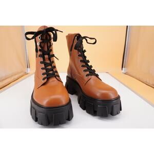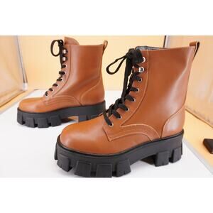Marc FisherHappy Brown Leather Lace Up Combat Ankle Boot SZ 8 biker Lug platform