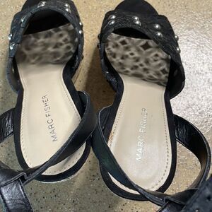 Marc Fisher "Hata" Espadrille Wedge Studded Sandals Black Suede sz 8