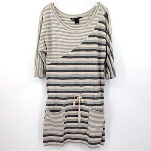 Marc Jacobs Striped Oversized Cotton Sweater Mini Dress Size Small. Features 2 side pockets, an oversized fit, and a drawstring waist. 100% cotton. In gently used condition with minor marks, please see photos.